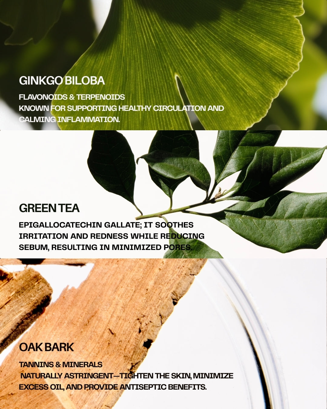Powered by antioxidant-rich Ginkgo Biloba, soothing Green Tea, and astringent Oak Bark Extract, this lightweight, fast-absorbing serum calms stressed skin and restores its natural glow. It works to visibly reduce redness, irritation, and environmental stress while reinforcing the skin barrier for a healthier, more even complexion.